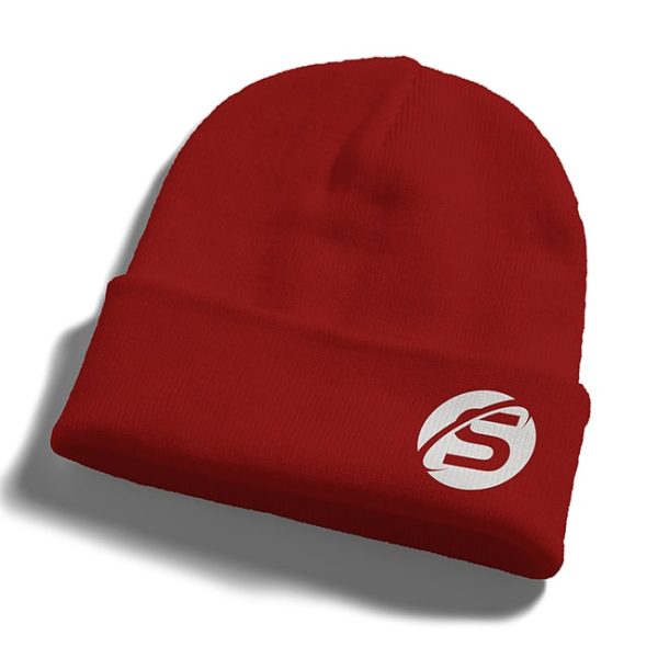 These soft knitted beanies can be worn as pictured or folded tight over forehead, keeping you warm on the coldest days. Available in black or red with white font.